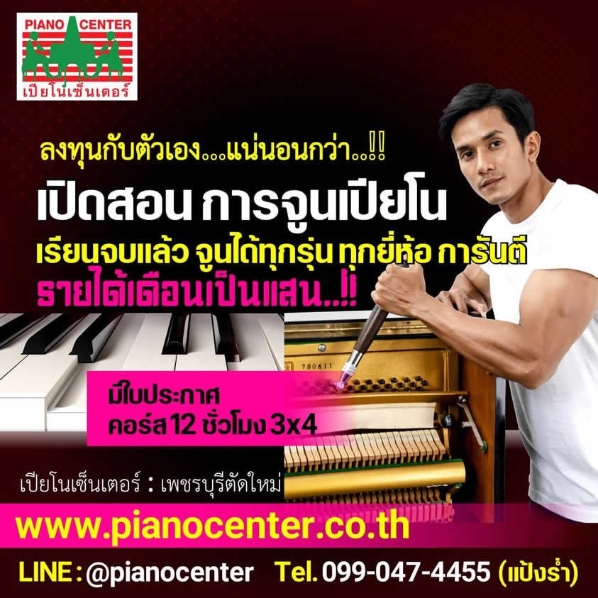 เปิดสอนการจูนเปียโน - คุณรู้หรือไม่ ? #นักจูนเปียโน สามารถสร้างรายได้เป็นแสนบาทต่อเดือน แถมปัจจุบัน นักจูนเปียโนยังหางานได้ง่ายกว่าเมื่อก่อนมาก เพียงคุณมีความสามารถในการจูนเปียโนที่ได้มาตรฐาน ก็พร้อมมีคนเรียกใช้บริการจากคุณผ่านสื่อ Social Media ต่างๆ มากมาย.